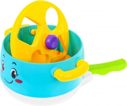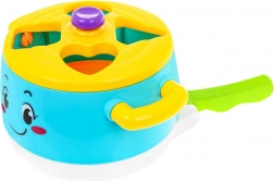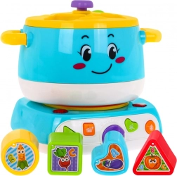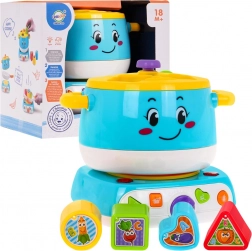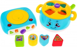 W zestawie znajduje się garnek, który służy jako sorter kształtów, co stanowi dla dziecka wyzwanie i jednocześnie radość z udanego rozwiązania. Zabawka jest zasilana dwoma bateriami AA (nie są dołączone), które zapewniają długotrwałą zabawę.