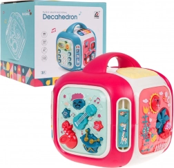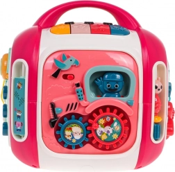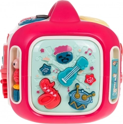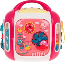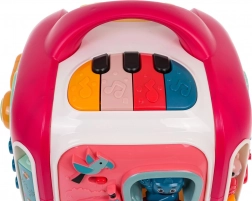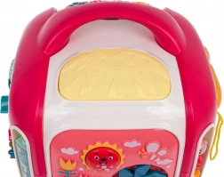 Każda ścianka boxu oferuje inny sposób odkrywania: panel muzyczny z gitarą, saksofonem i bębenkiem z efektami świetlnymi, wyjmowany „telefon” z cyframi 0–9 i przyciskami ze zwierzątkami oraz środkami transportu, ścianka z traktorkiem i zębatymi kółkami rozwijająca koordynację oraz ścianka ze słoneczkiem i wiatraczkiem do odtwarzania melodii. Na górze znajduje się czułe pianinko z 3 trybami (gama, losowe odtwarzanie, tryb muzyczny) oraz mikser dźwięku.