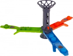 Gra Kto Pierwszy pozwala maksymalnie trzem graczom rywalizować ze sobą. Każdy gracz wybiera swoje stanowisko (zielone, niebieskie, pomarańczowe) i otrzymuje trzy kulki w odpowiadającym kolorze. Celem jest wystrzelić kulki, trafić w wieżę i jak najszybciej umieścić wszystkie swoje kulki na podstawie gry.