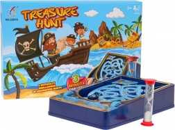 Gra planszowa dla dzieci Poszukiwanie Skarbów to idealny wybór dla małych poszukiwaczy przygód. Oferuje cztery różne trasy, po których gracze muszą nawigować swoją łódeczką na docelową wyspę skarbów za pomocą pokręteł połączonych z linkami napędzającymi łódeczkę.