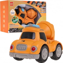 Elementem zabawki jest obrotowy bęben cementowy, który pozwala dzieciom naśladować prawdziwe prace budowlane i wzbogaca zabawę.