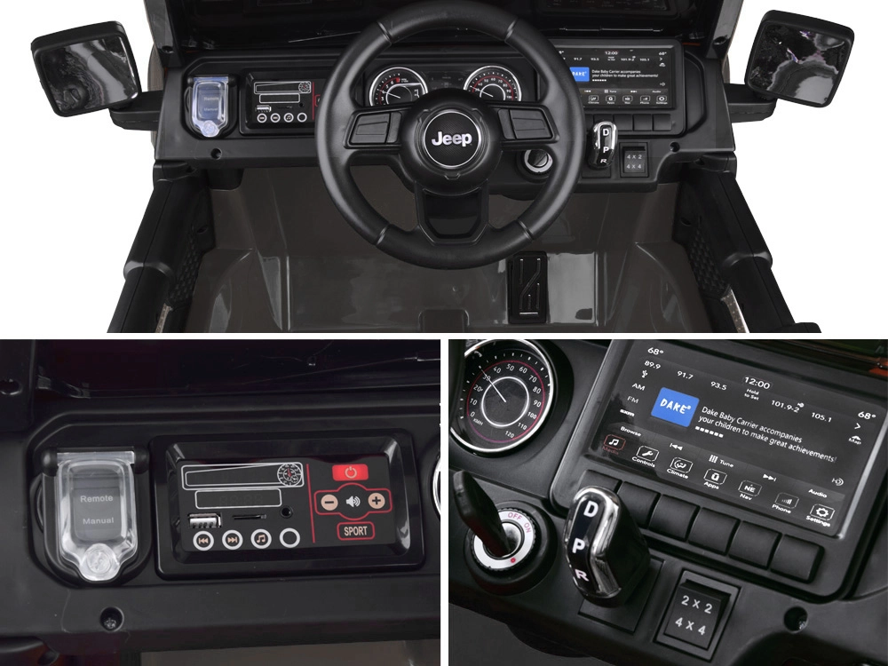 Rodzice mają wszystko pod kontrolą dzięki zaawansowanemu pilotowi 2,4 GHz z możliwością wyboru prędkości i zdalnego sterowania. Dziecko może jeździć także samodzielnie – przełącznik trybu jest dostępny na panelu. Duże miękkie koła EVA i tylne zawieszenie radzą sobie z nierównościami i zapewniają komfort na różnych nawierzchniach, a pięciopunktowe pasy pewnie trzymają nawet najmniejszych kierowców.