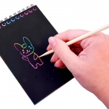 Kreatywny zestaw dla dzieci od 3 lat z 10 czarnymi kartami w formacie A6, pod którymi kryje się tęczowe tło. Za pomocą drewnianego patyczka do rysowania dzieci łatwo tworzą obrazki, kartki okolicznościowe lub wiadomości. Zabawna aktywność wspiera małą motorykę, kreatywność i koordynację ręka–oko, idealna także w podróży dzięki kompaktowemu formatowi.
