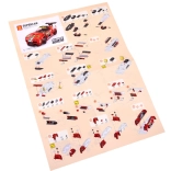 W opakowaniu znajdują się również naklejki, które nadają modelowi autentyczny i atrakcyjny wygląd. Złożone auto ma wymiary około 4,5 cm wysokości, 5,7 cm szerokości i 14,5 cm długości.