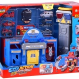 Duża Edukacyjna Zabawka łącząca stację policyjną i strażacką, zapewniająca godziny kreatywnej zabawy. Zawiera windę, rampy i alarmy do realistycznych scenariuszy.