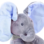 Lewa stópka uruchamia „Peek‑a‑boo, where are you?!” – słonik zachęca dzieci do zabawy w chowanego i interakcji.