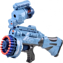 Duży pistolet Blaster z 40 piankowymi nabojami jest idealny dla miłośników gier akcji i strzeleckich. Ten blaster jest w całości wykonany z plastiku, a naboje zakończone są gumowymi końcówkami. Mechanizm umożliwia automatyczne przeładowanie po każdym strzale, co wydłuża zabawę. Jego konstrukcja umożliwia zasięg strzału do 12 metrów i dzięki oprogramowaniu do przełączania urządzeń łatwo się nim steruje.