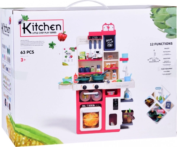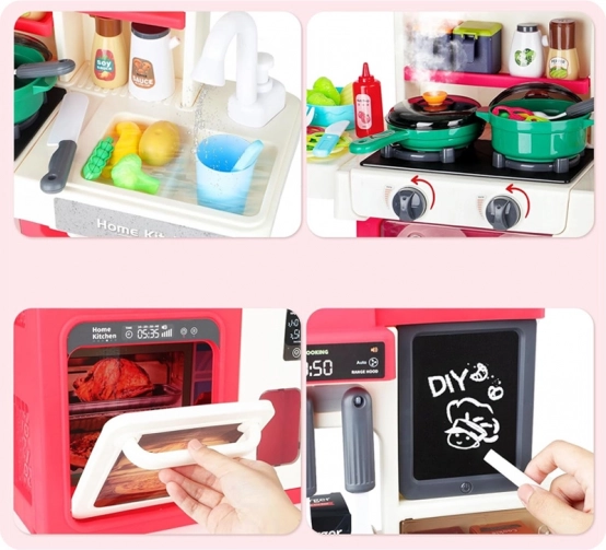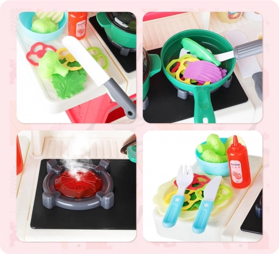 dziecięca interaktywna kuchnia z parą, wodą, światłami i dźwiękami – 88 elementów