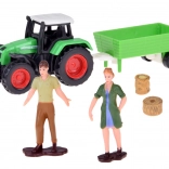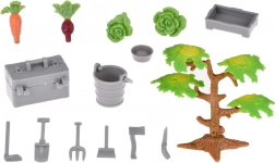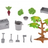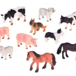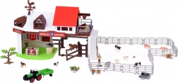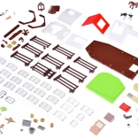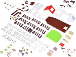 Zestaw zawiera plastikowe figurki zwierząt takich jak psy, konie, prosięta, owce i krowy, które wykonane są z dbałością o detale. Nie brakuje również postaci farmera i gospodyni, które wzbogacają grę o codzienne obowiązki rolnicze. W zestawie znajduje się także traktor z przyczepą, narzędzia ogrodnicze oraz dekoracyjne naklejki do personalizacji farmy.
