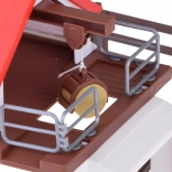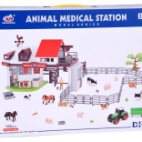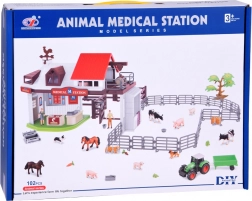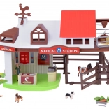 W zestawie znajduje się weterynaryjna stacja o wymiarach 34 x 24 x 15 cm, wykonana z trwałego plastiku i wyposażona w funkcjonalne drzwi oraz okna. Dzieci mogą tu symulować opiekę nad zwierzętami i zapewniać niezbędne zabiegi medyczne.