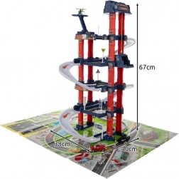 Szerokie spiralne rampy, barierki zabezpieczające oraz lądowisko dla helikoptera na dachu zapewniają nieskończone scenariusze zabawy.