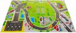 W zestawie znajduje się szczegółowa mata z planem miasta, znaki drogowe, 2 autka i helikopter – gotowe do natychmiastowej zabawy.