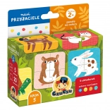 Odkryj edukacyjny zestaw puzzli Nasi Przyjaciele, który zawiera 5 czteroelementowych układanek z kolorowymi tłami ułatwiającymi układanie: