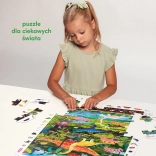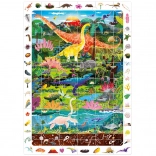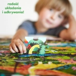 Odkrywcze puzzle Dinozaury zawierają 60 elementów, które tworzą urzekający obraz z dinozaurami. Ilustrację otacza ramka pełna detali, które dzieci uwielbiają odkrywać i porównywać z obrazkiem. W zestawie znajduje się także edukacyjny plakat z ciekawostkami ze świata dinozaurów.