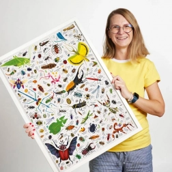 Odkryj piękno i różnorodność fascynujących owadów z całego świata z puzzlami PUZZLOVE. Ten zestaw z 1000 elementami z autorską ilustracją jest wyprodukowany w Polsce i oferuje przyjemną relaksację oraz trening umysłu; po ułożeniu powstaje obraz o wymiarach 48 × 68 cm.