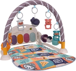 Ta interaktywna mata do zabawy łączy wygodną podkładkę, pałąk z zawieszkami i świecące pianinko, aby wspierać rozwój dziecka na każdym etapie – od leżenia na plecach, przez naukę siadania, aż po pierwszą samodzielną grę na klawiszach. Konstrukcja z bezpiecznego bioplastiku jest trwała i przyjazna dla środowiska, a miękki, antypoślizgowy i łatwy do czyszczenia materiał zapewnia bezpieczeństwo i komfort.