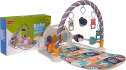 Pianinko z 4 podświetlanymi klawiszami i przyciskiem melodii można odchylać w kilku pozycjach, wyjąć z maty i dzięki rączce zabierać ze sobą. Pałąk oferuje 4 wiszące grzechoczące misie oraz świecącego delfinka, boczne koralikowe elementy przesypowe rozwijają małą motorykę. Głośność można wygodnie regulować.
