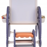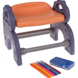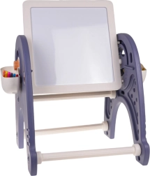 Zestaw 4 w 1: tablica, stół, podkładka do układania klocków i krzesło dla dzieci od 3 lat. Zestaw wykonany jest z najwyższej jakości plastiku, nie ma ostrych krawędzi i jest stabilny. Na plastikowych nogach umieszczona jest tablica, którą można odchylać pod dowolnym kątem i obracać. Z jednej strony znajduje się tablica do rysowania, a z drugiej podkładka do układania klocków. Tablicę i podkładkę można używać w pozycji pionowej lub poziomej. W pozycji poziomej zestaw może służyć jako stolik do rysowania, nauki lub jedzenia, a także jako podkładka pod klocki. W zestawie znajduje się gąbka i 6 pisaków. Po bokach zestawu znajdują się również dwa koszyczki na akcesoria plastyczne. Zestaw rozwija dziecięcą wyobraźnię i zdolności poznawcze. .. Funkcje zestawu: . - przeznaczony dla dzieci od 3 lat, .- wykonany z bezpiecznych materiałów, bez ostrych krawędzi, .- wiele możliwości zabawy: .* stolik do rysowania, .* stół do nauki lub zabawy, .* stojak do układania klocków, .* tablica do rysowania, .- stabilne krzesło, .- rozwija dziecięcą wyobraźnię i zdolności poznawcze. . |