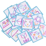 - 72 kolorowe patyczki, 28 kart ze wzorami, ścieralny marker z gąbeczką, dwustronna tablica