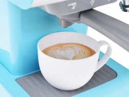 W górnej części znajduje się zamykany zbiornik na wodę, dołączony wyjmowany uchwyt łatwo wsuwany do ekspresu, a jego prawidłowe ustawienie uruchamia „nalewanie” do filiżanki. Ruchoma dysza parowa umożliwia „spienienie” mleka do latte lub cappuccino, dzięki czemu zabawa w kawiarnię zyskuje zupełnie nowy wymiar.