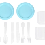 - Bogate akcesoria: 2 kubki, 2 talerze, 2 widelce, 2 łyżeczki, 2 noże.
