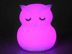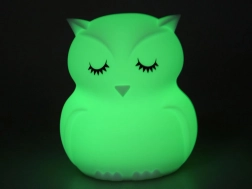 Ta dziecięca lampka nocna sowa z miękkiego i bezpiecznego silikonu delikatnie rozświetla ciemność i pomaga przegonić nocne strachy. Oferuje 9 kolorów, w tym biały, czerwony, żółty, różowy, zielony, niebieski, pomarańczowy, granatowy i fioletowy. Kolory zmienisz dotykiem bezpośrednio na lampce lub wygodnie pilotem.