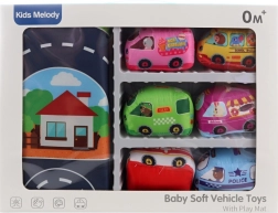 Odkryj zabawną i praktyczną zabawkę dla najmłodszych: zestaw obejmuje materiałowy dywanik, który służy także jako torba do przenoszenia, oraz 6 miękkich pojazdów do bezpiecznej zabawy od 0+. Idealny w domu i w podróży.