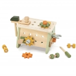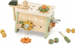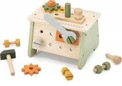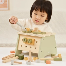 Odkryj sprytną zabawkę, która łączy mini warsztat i skrzynkę na narzędzia 2w1. Dzieci poznają narzędzia i poćwiczą wkręcanie, uderzenia młotkiem oraz precyzyjne łączenie. Po odwróceniu stolika powstaje kompaktowe pudełko do łatwego przechowywania i przenoszenia wszystkich elementów.