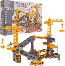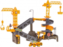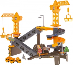 Zbuduj własny tętniący życiem plac budowy z dwoma funkcjonalnymi żurawiami, zakrętami i windą dla autek. Ruchome tory wwożą pojazdy na górę, z ramp zjeżdżają z powrotem w dół – idealne połączenie akcji i pomysłowej zabawy. Elementy wykonane są z trwałego plastiku, a dzięki wyrazistym kolorom przyciągają uwagę od pierwszego spojrzenia.