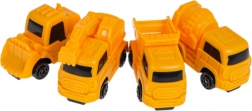 W zestawie znajdują się małe budowlane autka, znaki drogowe, szlaban oraz dekoracyjne naklejki dla autentycznej scenerii placu budowy.