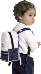 Wózek zachwyca eleganckim hiszpańskim designem z pikowanymi detalami i imitacją drewna na uchwytach. Nie brakuje bezpiecznego trzypunktowego pasa, miękkiego wyściełania oraz pojemnego kosza na niezbędne drobiazgi. W komplecie znajduje się także stylowy plecaczek, który można przypiąć do wózka lub nosić na plecach.