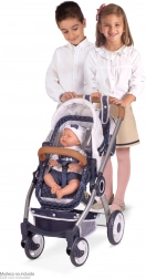 Gondolę można zamontować przodem lub tyłem do kierunku jazdy i łatwo przekształcić w siedzisko spacerowe. Trzypunktowy pas i miękkie wyściełanie zapewniają lalce wygodną i bezpieczną podróż.
