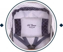 W zestawie pikowany pokrowiec, miękka poduszka, praktyczny dolny kosz oraz ozdobny plecaczek w dopasowanym stylu – wszystko dla maksymalnego komfortu podczas zabawy.