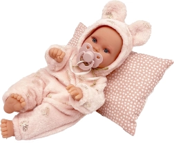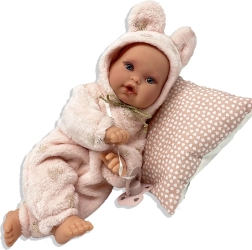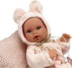 Lalka Antonio Juan Kika to ręcznie wykonane niemowlę, które wyróżnia się realistycznymi detalami, delikatnym wyrazem twarzy i miękkim strojem. Wewnętrzne wzmocnienie umożliwia przyjmowanie naturalnych pozycji – może krzyżować nóżki, łączyć dłonie lub leżeć jak prawdziwe niemowlę. Miękkie materiałowe ciało zachęca do przytulania, a winylowe części zapewniają trwałość i wierność detali.