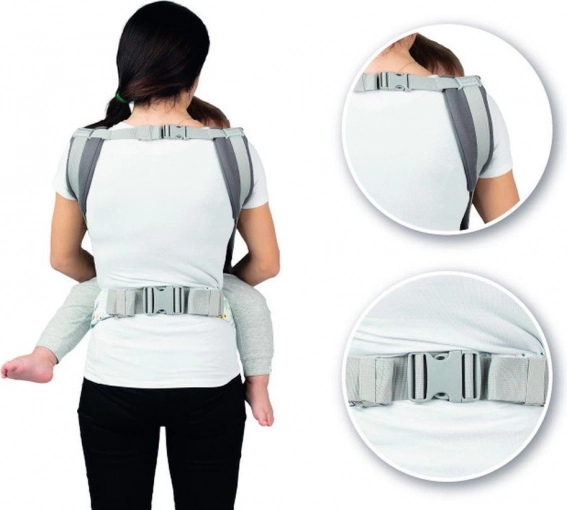 - 6-punktowa regulacja – rośnie wraz z dzieckiem i dopasowuje się do sylwetki osoby noszącej.