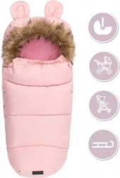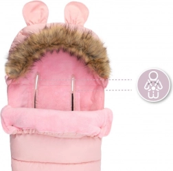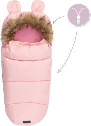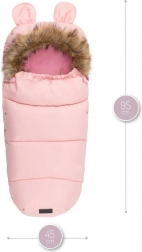 Praktyczny zamek na całej długości umożliwia szybkie ułożenie dziecka i łatwe wietrzenie. Kaptur z misiowymi uszkami oraz odpinanym obszyciem ze sztucznego futerka dodaje uroku i lepszej ochrony przed chłodem. Materiał jest nieprzemakalny, więc wilgoć ani roztopiony śnieg nie stanowią problemu.