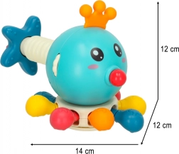 Urocza ośmiorniczka Bibi-Inn w kolorze niebieskim łączy zabawkę sensoryczną i gryzak w jednym. Oferuje wiele możliwości zabawy, wspiera motorykę małą oraz rozwój sensoryczny dzięki zróżnicowanym fakturom, kolorom i ruchomym elementom. Wykonana z bezpiecznych materiałów ABS i TPE oraz ma kompaktowe wymiary dopasowane do dziecięcych rączek.