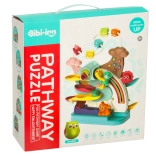 Kolorowe kuleczki i mały samochodzik mkną po dwóch poziomach torów, co wspiera koncentrację i koordynację. Dzieci lubią obserwować spadanie kulek i próbować nowych kombinacji.