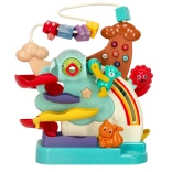 Wyraziste kolory i płynny ruch kuleczek wzmacniają percepcję wzrokową, a manipulowanie elementami kształtuje małą motorykę. Dziecko jednocześnie w naturalny sposób poznaje liczby i uczy się zależności przyczynowo‑skutkowych.