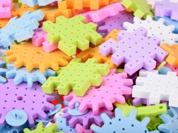 Odkryj świat zabawy i kreatywności z naszymi kolorowymi klockami konstrukcyjnymi. Ten zestaw zawiera łącznie 165 elementów w różnych kolorach, które umożliwiają tworzenie fantastycznych konstrukcji. Dzieci mogą łączyć zębatki i tworzyć poruszające się struktury, ćwicząc swoje zdolności twórcze.