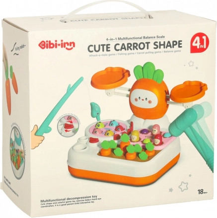 Ten kolorowy, wielofunkcyjny zestaw oferuje dzieciom aż cztery różne aktywności w jednym. Dzięki młotkowi, wędce, marchewkom i szalkom wagi dzieci uczą się równowagi i porównywania ciężaru, ćwiczą spostrzegawczość oraz trenują cierpliwość i precyzję.