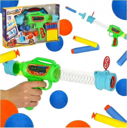 Pistolet 2w1 zapewnia dzieciom dynamiczną, a jednocześnie bezpieczną zabawę. Dzięki dwóm typom amunicji – piankowym nabojom i kulkom – dzieci łatwo dopasują grę do każdej sytuacji. Przezroczysta lufa ze sprężyną spiralną wygląda świetnie i pokazuje prostą, mechaniczną zasadę strzału bez baterii.