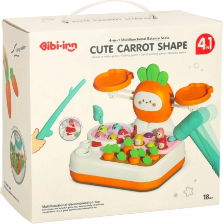 Dzięki kilku trybom zabawy zabawka jest idealna do samodzielnej zabawy i wspólnej rozrywki rodzeństwa. Kolorowe elementy i bezpieczne wykonanie z plastiku ABS zapewniają trwałość i łatwą pielęgnację. Zestaw zawiera wszystko, co potrzebne: bazę z wagą, 5 rybek, 8 marchewek, wędkę i młoteczek – gotowe do natychmiastowej zabawy.
