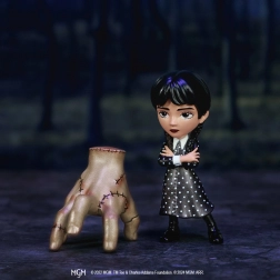 Figurki uchwytują ulubione postaci serialu, takie jak Ręka Thing i Wednesday w różnych strojach.