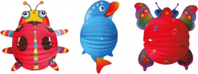 Lampion kula Zwierzątka 24 cm z pięcioma różnymi motywami zwierzątek na dziecięce przyjęcia i imprezy.
