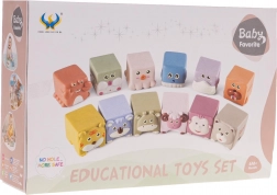 Kostki wykonane z bezpiecznych materiałów pomagają dzieciom uczyć się rozpoznawania zwierząt.