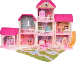 Odkryj piękny i duży różowy domek, idealny dla dzieci od trzeciego roku życia. Ten bajkowy domek składa się z 4 oddzielnych modułów, które można dowolnie łączyć. Domek oferuje w pełni wyposażony salon, łazienkę, sypialnię, kuchnię i garderobę. Nie brakuje także pokoju dziecięcego i zewnętrznej strefy relaksu.
