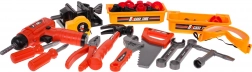 Zestaw zawiera realistyczne plastikowe narzędzia, takie jak wiertarka, młotek, piłka i inne, które pobudzają dziecięcą wyobraźnię.