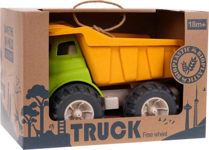 Wywrotka wykonana jest z bioplastu, co jest przyjazne dla środowiska, a jednocześnie bezpieczne dla dzieci.