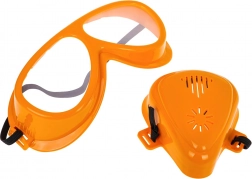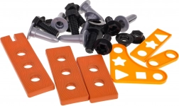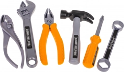 Śrubokręt, młotek, klucze, szczypce, okulary ochronne i maska, drewniane listwy oraz elementy łączeniowe. Wszystko do kreatywnego konstruowania i treningu małej motoryki.